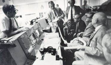 Kraft, and Gilruth. At left is Flight Director Glynn Lunney.