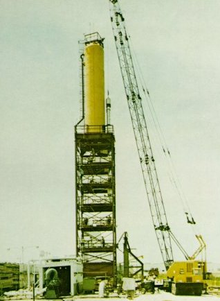 three flight S-IC stages were assembled at MSFC and tested in this stand. The massively reinforced