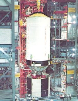 At one time we had considered preparing the space vehicle horizontally, and then erecting it vertically on the pad, but this was simply out of the question for a 360-foot bird. So we had to erect the Saturn V stage by stage, which meant that, because of rain and wind, we had to have an enclosed building. Even a 10- to 15-knot wind would have given us trouble while we were erecting outdoors, and higher winds could prove disastrous. Thus the Vehicle Assembly Building became an enclosed structure. Should the high bays be strung out four in a row, or built back-to-back? We decided on the latter format because only two big cranes (250-ton bridge cranes) would be needed instead of four, and because the box-like structure would better withstand hurricane winds of 125 mph. The possibility of hurricanes also dictated that we have two crawlers, one to carry the Mobile Service Structure away from the pad, and one to bring the Apollo-Saturn V and its Mobile Launcher to shelter in the VAB. The height of the building was dictated by the hook height, and we started planning for 465 feet; the final height was 525. Remember that when we started planning the VAB in 1961 we weren't sure what size bird would roost in this big nest. We also had to begin design work before we knew whether the trip to the Moon would involve an Earth-orbit or lunar-orbit rendezvous. I think of the VAB not as a building but as an intricate machine that assembled the vehicle in its final phases. People were surprised to learn that the various stages had never seen each other until they were introduced in the VAB drydock. The first stage had been built by Boeing at Michoud outside New Orleans, the second stage by North American at Redondo Beach, Calif., the third by McDonnell Douglas at Huntington Beach, Calif., and the Instrument Unit by IBM at Huntsville, Ala. The spacecraft that went on top of this stack were also introduced for the first time in the VAB, the CSM from the North American plant at Downey, Calif., and the LM from Grumman in Bethpage, Long Island. Could these pieces, arriving from all over the country, play together? Every wire in every plug had to join exactly the right wire, with no electrical interference or change of signal strength, and a command signal had to work from the Instrument Unit through the third and second stages into the first. After the various stages had been put together they had to be checked out as an entity, and once this had been done you naturally don't want to break the electrical connections again. When the Instrument Unit orders "Go right", you don't want an engine three stages down to go left. The pieces not only had to match each other, but also the ground equipment. Lines for the flow of liquid hydrogen from the ground had to match the stages, and so did others for the flow of liquid oxygen and still others for gaseous nitrogen and helium. Television monitors had to be designed and installed so that we could know what was happening in hundreds of places at any given time - which meant all the time.