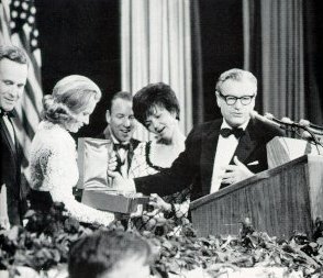A photo of New York Governor Nelson Rockefeller presenting a commemorative plates to wives of astronauts On a six-city tour, the Apollo 8 astronauts and their wives received a warm welcome and round of tributes. Here New York Governor Nelson Rockefeller is presenting them with a commemorative Steuben glassware plate titled "The Mountains of the Moon".