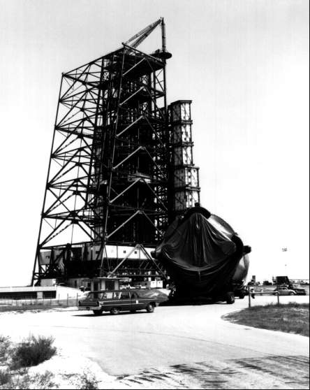 Transporting the SA-5 first stage to pad 37B.