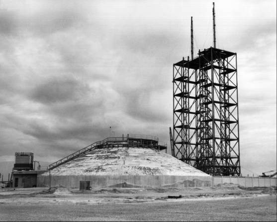 The blockhouse at LC-34, with the service structure rising behind it, November 1960.