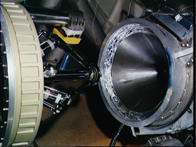 An engineering set up illustrating the docking system of the Apollo spacecraft.
