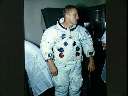 Astronaut James Lovell seen at Spacecraft guidance and navigation station